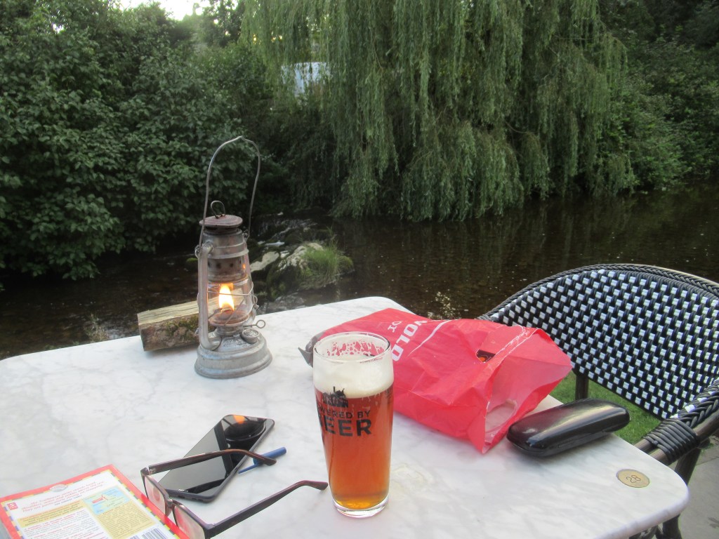 I shower and hand wash some clothes, then go out to eat and continue my pub crawl around the other two of Malham’s three pubs. First the slightly upmarket Beck Hall with a nice outdoor area alongside a stream, where the couple at the next table are enjoying the antics of a family of Grey Wagtails. On to the Buck Inn where I meet up with The Dutch Guy again and we have dinner.