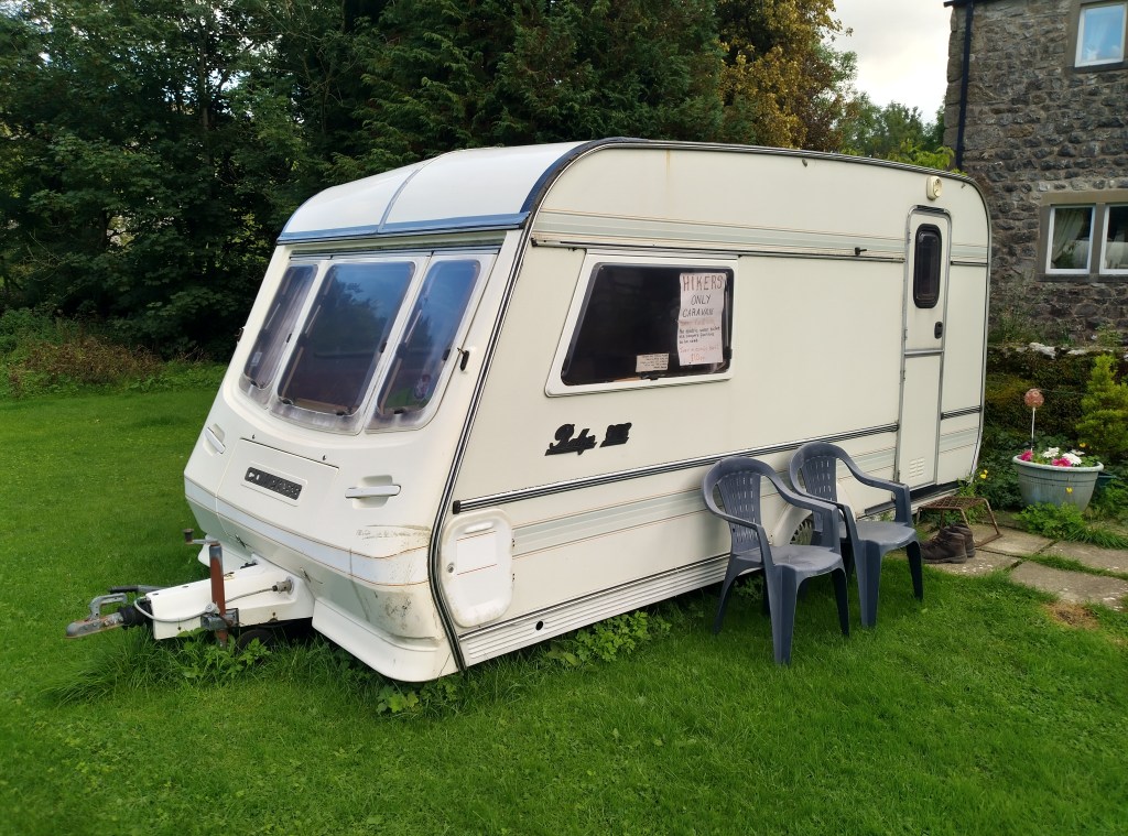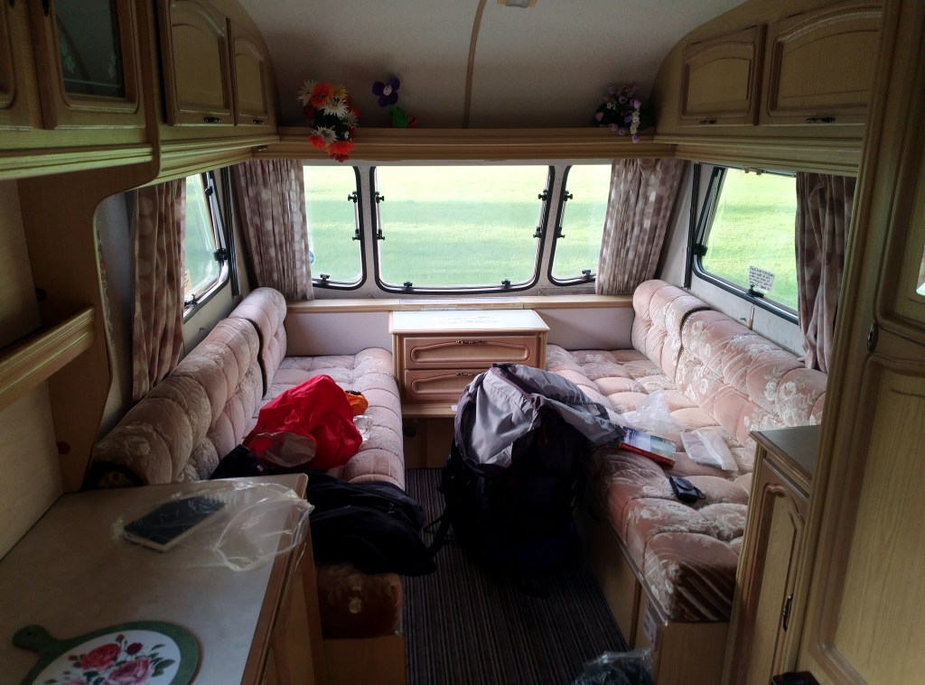 At the campsite I notice a slightly sleazy caravan available to rent for hikers only (according to a sign in the window). At £10 per night, compared to £8 for a tent pitch, it looks like my tent will be staying in its bag for another night. The caravan seats can be folded down into a double bed. There’s no electricity or anything else inside, but then there’s nothing inside a tent either (except bitterness and regret).