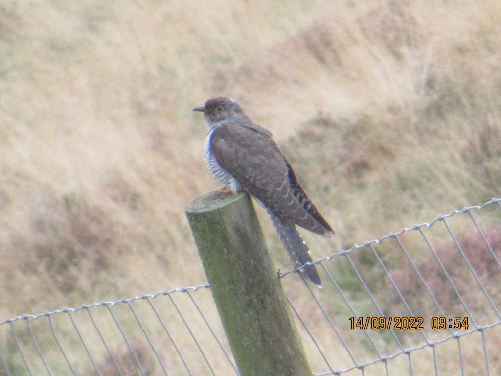 I’m surprised to come across a juvenile Cuckoo. As brood parasites with no need to raise their own chicks, adult Cuckoos leave the UK well before the end of August and will probably be in Africa by now. Occasionally you come across these brown juveniles later in the year after they have been raised by their foster parents – in this case almost certainly a pair of the Meadow Pipits that have been so abundant along the whole PW, their ‘Seep, Seep, Seep’ calls accompanying almost every step of the way. This Cuckoo will also soon be off to Africa.