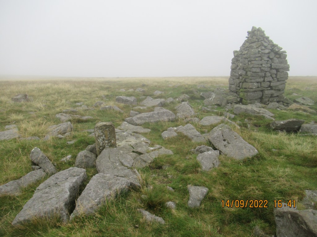 I pass the wonderfully chunky cairn on Knock Fell Old Man and then arrive at Knock Fell summit (794m). Just before I get here, a fog blows in but soon blows out again.
