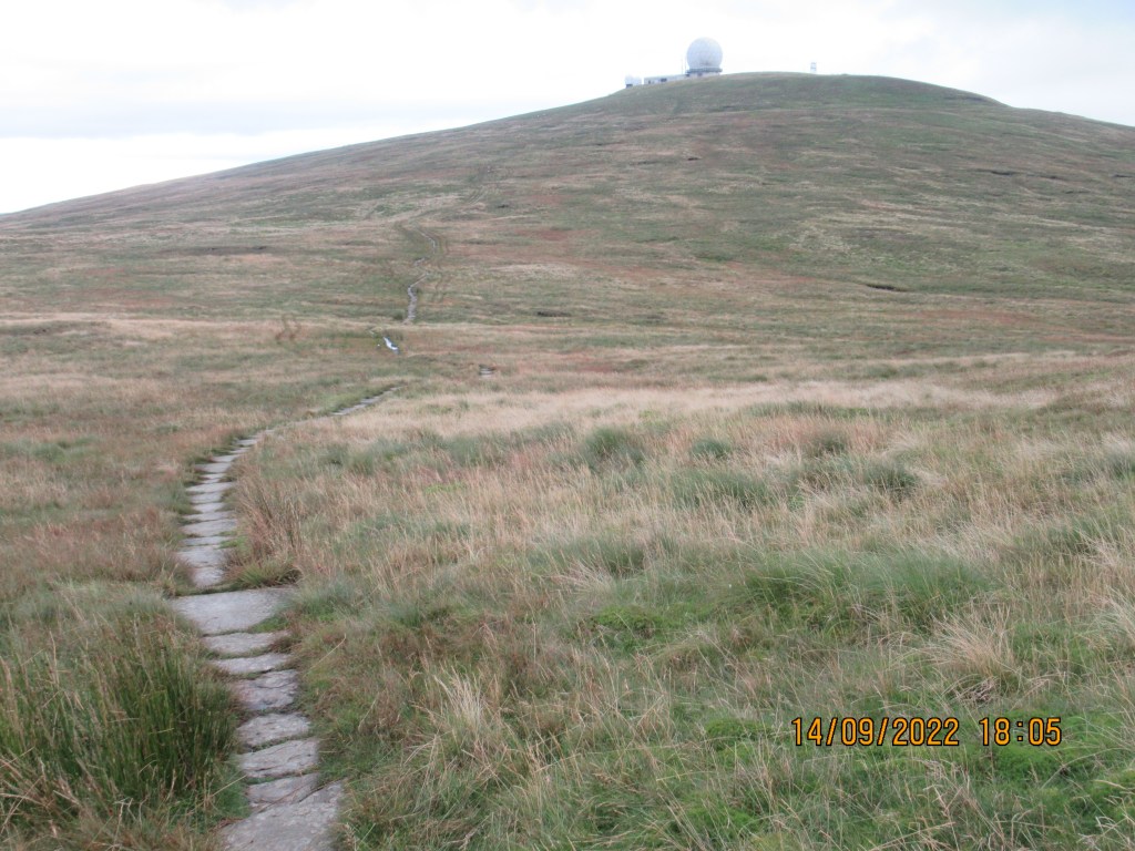 The next climb up takes me to the science fiction radar station on Great Dun Fell, followed by a descent and then another climb up to Little Dun Fell (841m). Just beyond the summit I find a good wild camping spot and decide not to walk on to the next peak – Cross Fell itself: the main event for which the last three peaks have been mere support acts. So I don’t quite make it to the highest peak today but I can almost touch it from here, and I’ll tackle it with fresh legs in the morning.