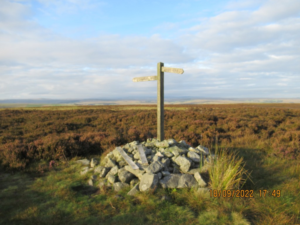 Lunch digested, I climb up out of the village and I’m soon back amongst the sheep and incessant Meadow Pipits. I keep climbing and pass the summit of Deer Play, five miles since lunch without any dramas. I consider camping here but decide to put one more mile under my boots to the summit of Whitley Pike.