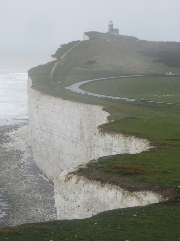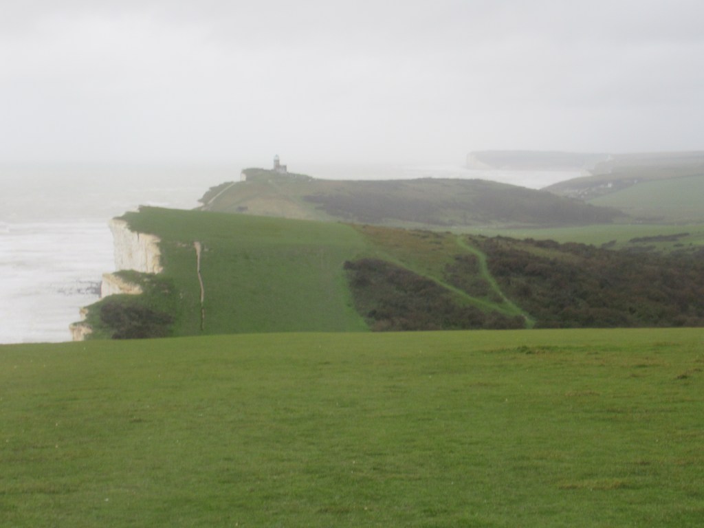Coming down the other side, I am more sheltered from the wind but still getting soaked. I am completely enveloped in waterproofs, but the water is still finding its way through to my inner layers. I pass the Belle Tout Lighthouse, now a private residence, and descend to the National Trust visitor centre at Birling Gap where I drink an over-priced soft drink and have a few minute’s respite from the weather.