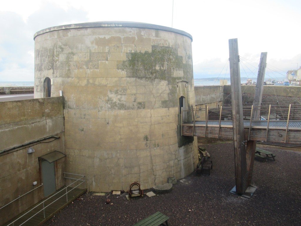 Eventually the town of Seaford appears below me and I descend back onto flat ground, where I pass the final (most westerly) Martello tower on the coast – now a museum. From here it is a short, flat walk along the seafront to Newhaven. The wind has dropped considerably but the sea is still very rough, with some dramatically tall waves crashing onto the shingle.