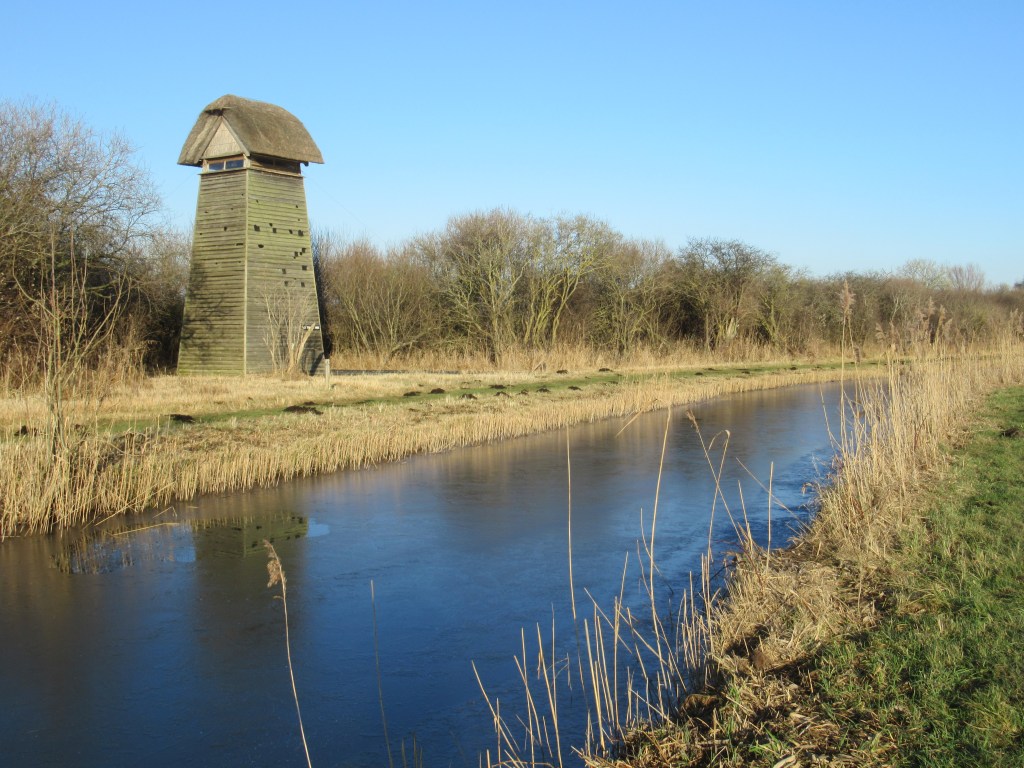 The sun is trying to shine through the fog, and I decide to go to a nearby hide to eat the breakfast sandwiches I’ve brought along. By the time I’ve finished the fog has cleared, leaving a clear blue sky over a frosty landscape. There is no hint of a breeze and the light from the low sun is really beautiful. The muddy paths are frozen, making walking easy, and there aren’t too many people around on most of the reserve away from the car parks. Wicken Fen can get very busy at the weekend. I first started coming here in the 80s and, in winter, I pretty much had the whole place to myself. Back then only people interested in nature visited nature reserves, but nowadays most are filled with dog walkers, mountain bikers and joggers, most of whom don’t really understand what a nature reserve is for and just treat it like any other park or playground, as a place to shout, let off steam, and let their dogs run free to harass the wildlife. Personally, I blame Springwatch!
