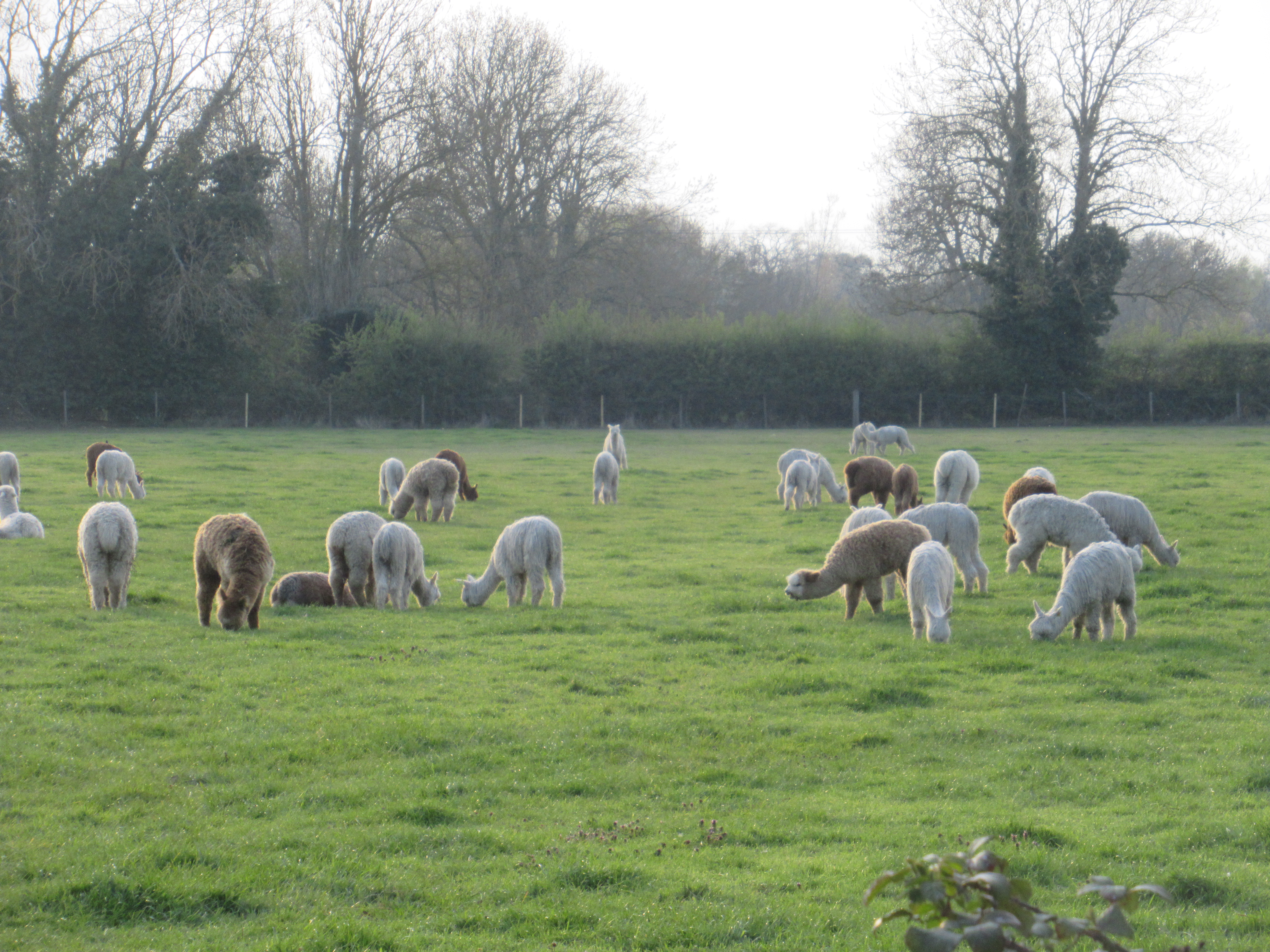 At RAF Wyton there is at least a footpath to walk on. This is the official start and finish of the Pathfinder March and still a functioning RAF property. A bus to Cambridge stops right in front of me to test my resolve. As nice as it would be to be at home with my feet up within half an hour, I press on. Turning off the main road onto Mere Way towards Houghton, I find the only other livestock on the trail aside from cows and beagles – a field full of alpacas.