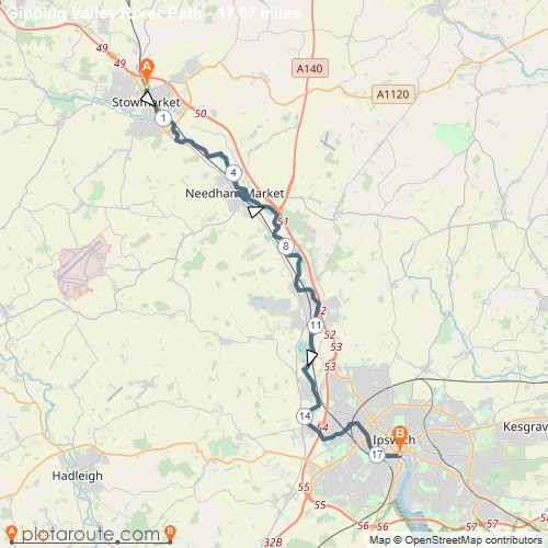 Suffolk is unquestionably England’s finest county. I am completely unbiased in this view, and the fact that I was born there is neither here nor there. I’ve walked most of this route a couple of times before, but I’ve always started from Ipswich and, after walking about 12 miles (19 km), I’ve always bailed at Needham Market, where the path passes close to the railway station. Today I’ve outsmarted myself and started in Stowmarket, so I’ll have no option but to continue to the end.