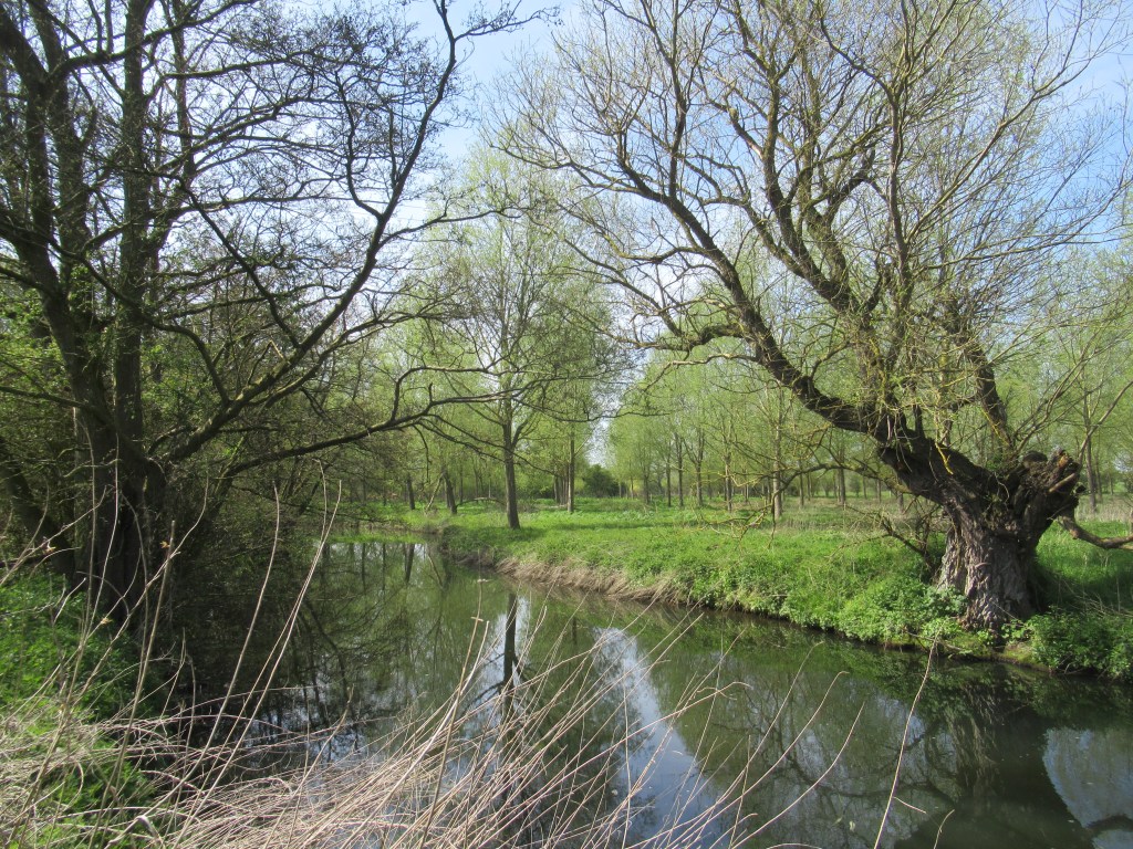 The sun is shining and it’s a perfect spring day for another local walk. This time it’s a one-day meander through beautiful countryside in the county of Suffolk. ‘Meander’ is exactly the right word for it as well, as this walk follows the twisting course of the River Gipping between the towns of Stowmarket and Ipswich. The river flows slowly across this flat landscape and the walk should be taken slowly as well, as it passes for 17 miles (27km) through floodplain meadows, along riverbanks well wooded with willow and alder, past paddocks of sheep, cows and horses, and numerous fishing lakes formed by gravel extraction. Occasional trains pass by as this route often runs close to the railway line between Cambridge and Ipswich, sometimes passing under the line itself.