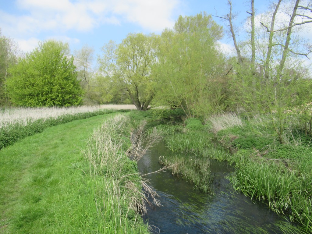 At Rushbrook Mill the old mill building has been converted into some very nice flats. There are quite a few of these defunct water mills along the route – attractive buildings now converted into homes and business premises. I hear a Nightingale singing from an unseen perch across the river – newly arrived from its wintering grounds in Africa and my first one of the year. They have declined greatly in the UK, but Suffolk is still one of the best counties in which to find them.