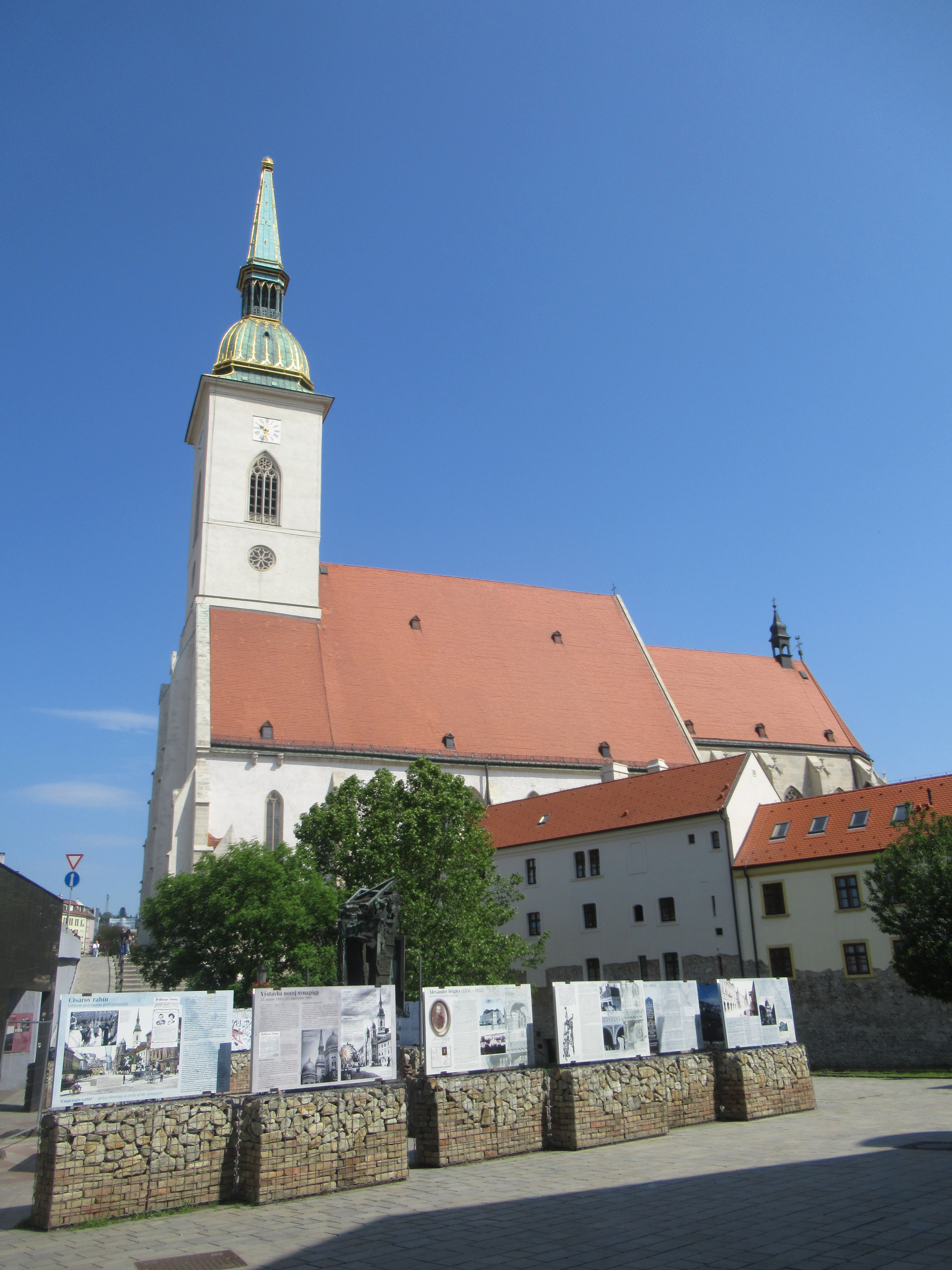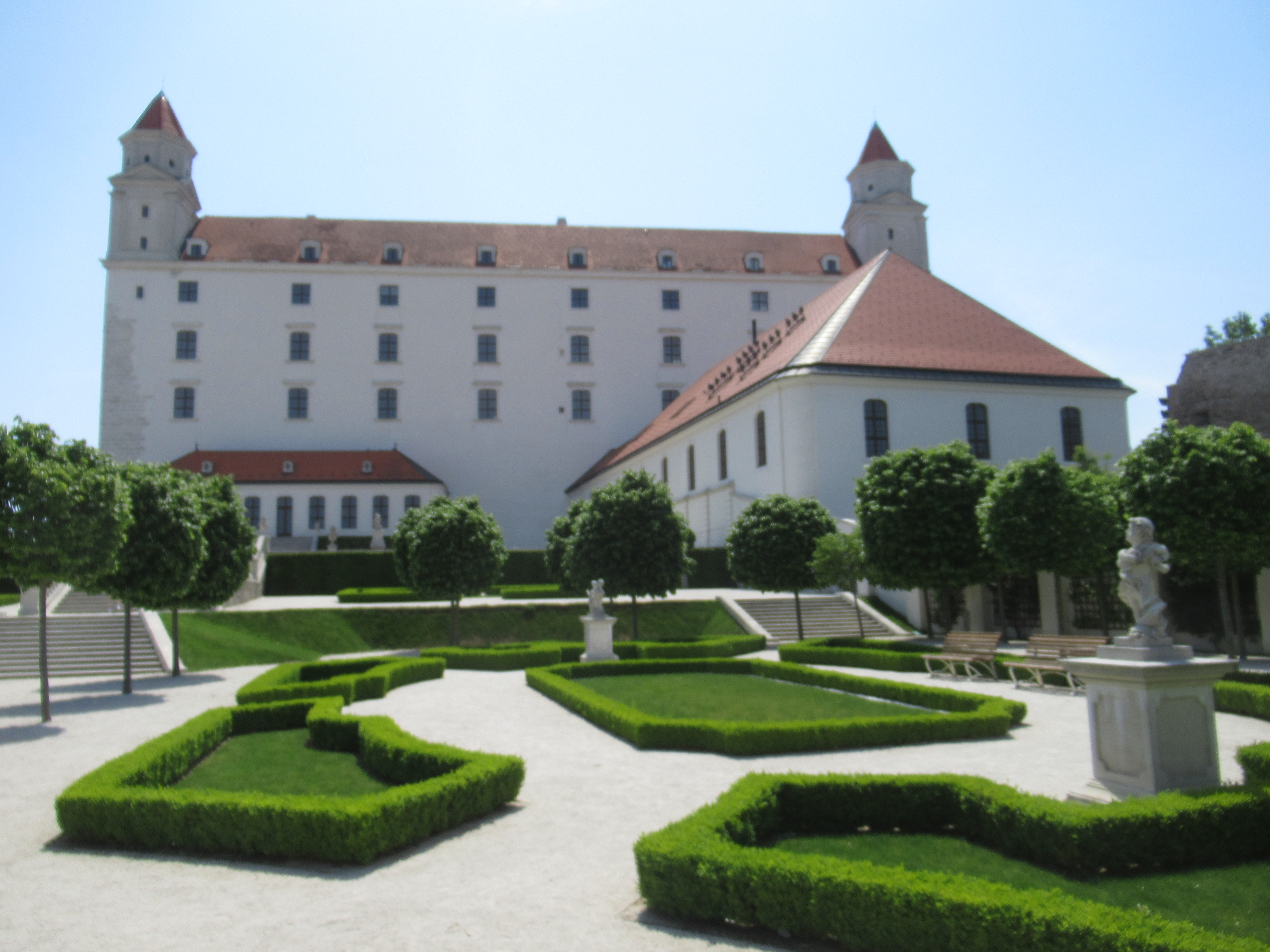 In Bratislava I stayed at the Hotel Maxine… uh… I mean the Hotel Max Inn which, just like in Vienna, was a little way from the centre but close to a train station and a bus stop with a very short (four stops) bus ride into town. The cost was £126 (€142) for three nights, including city tax, and I was really impressed by what I got for the price. The room was excellent – very quiet, clean and comfortable, with bath, shower, fridge and TV. The staff were really friendly and helpful, and a great buffet breakfast was available for €9. A couple of restaurants and a gas station shop were available nearby.