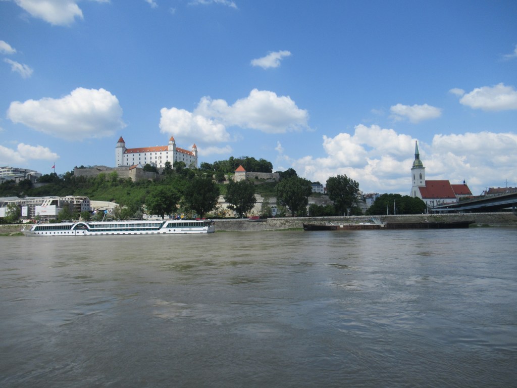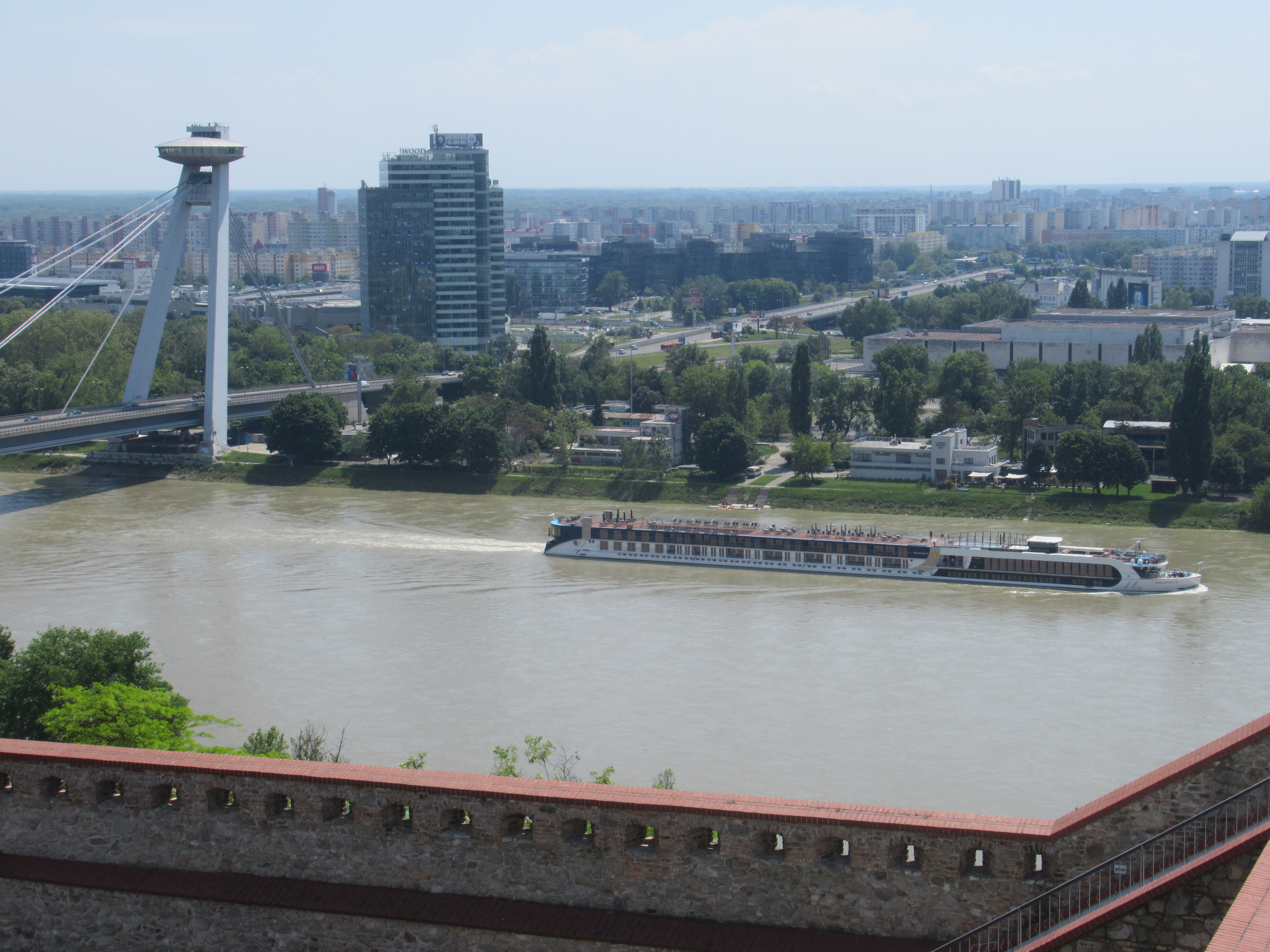 When I’m ready to leave I notice a tourist ferry boat is about to leave for Bratislava and I find I can pay the fare onboard. It’s a much nicer way to get back than the bus, sailing along the Danube with Slovakia on the port side and Austria to starboard. I add Great Cormorant to the bird list and get good views of the city from the water as we pull in. There are lots of long river cruise boats moored along the bank, some looking very upmarket. This kind of river cruise between cities appeals to me much more than a sea cruise.