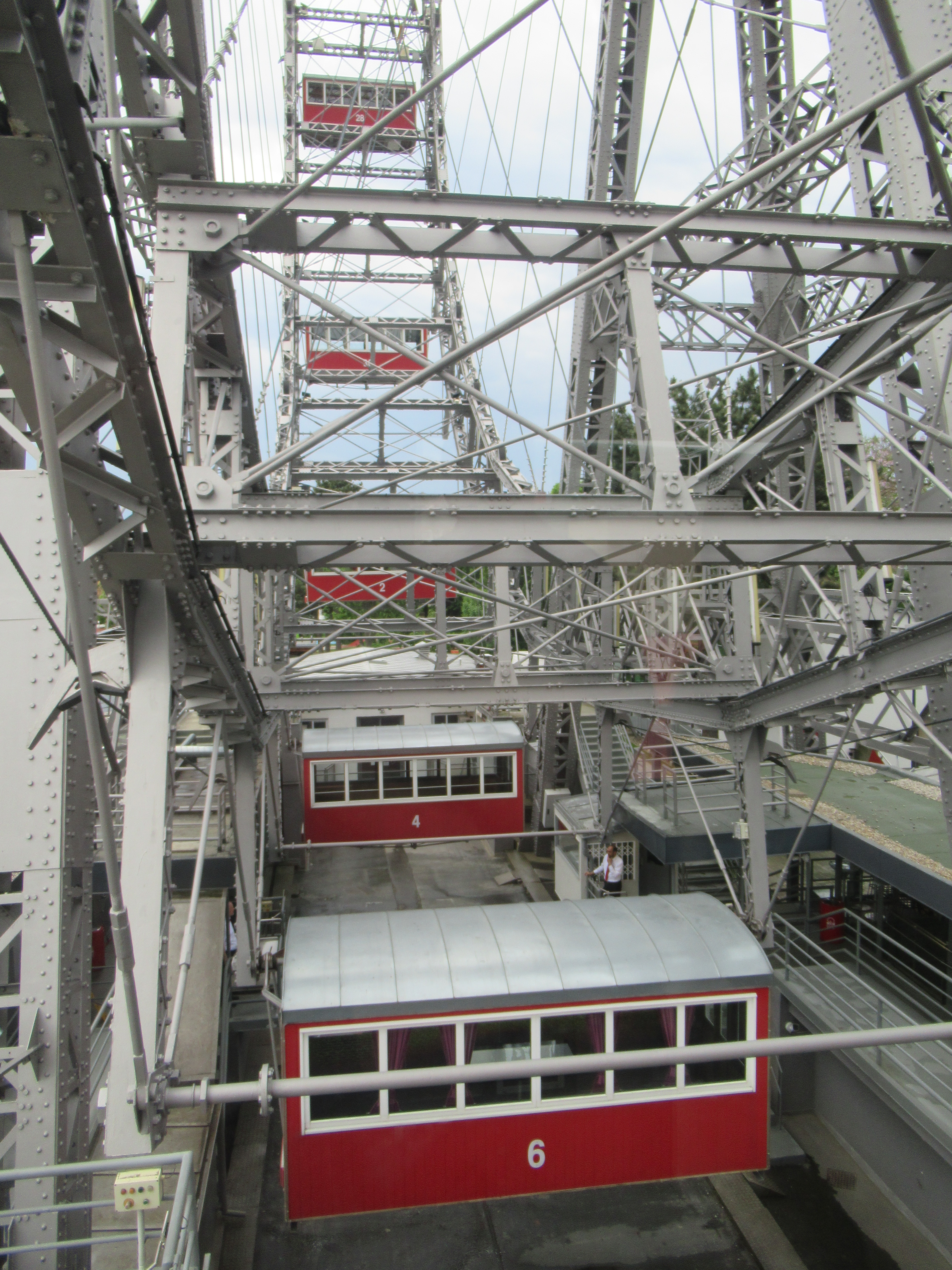 By the time I leave and catch a tram it has started raining, just like my first day here. I have to be at the airport in a few hours for an early morning flight, so I try to pack all the touristy stuff into my last few hours in Vienna. Later I’ll have schnitzel and beer for dinner at Naschmarkt – almost a mile (1.5 km) of market stalls and eateries, but before then I head to the Prater park for a ride on the Wiener Riesenrad, Vienna’s famous Ferris wheel, built in 1897 and featured in The Third Man – basically a bunch of garden sheds bolted onto one of the World’s greatest Meccano projects. The views are spectacular, the presence of Orson Welles is almost palpable and, as with many European tourist attractions, it’s accompanied by the sound of four American teenage girls wittering slightly too loudly and excitedly about everything apart from the actual thing that they are currently experiencing.