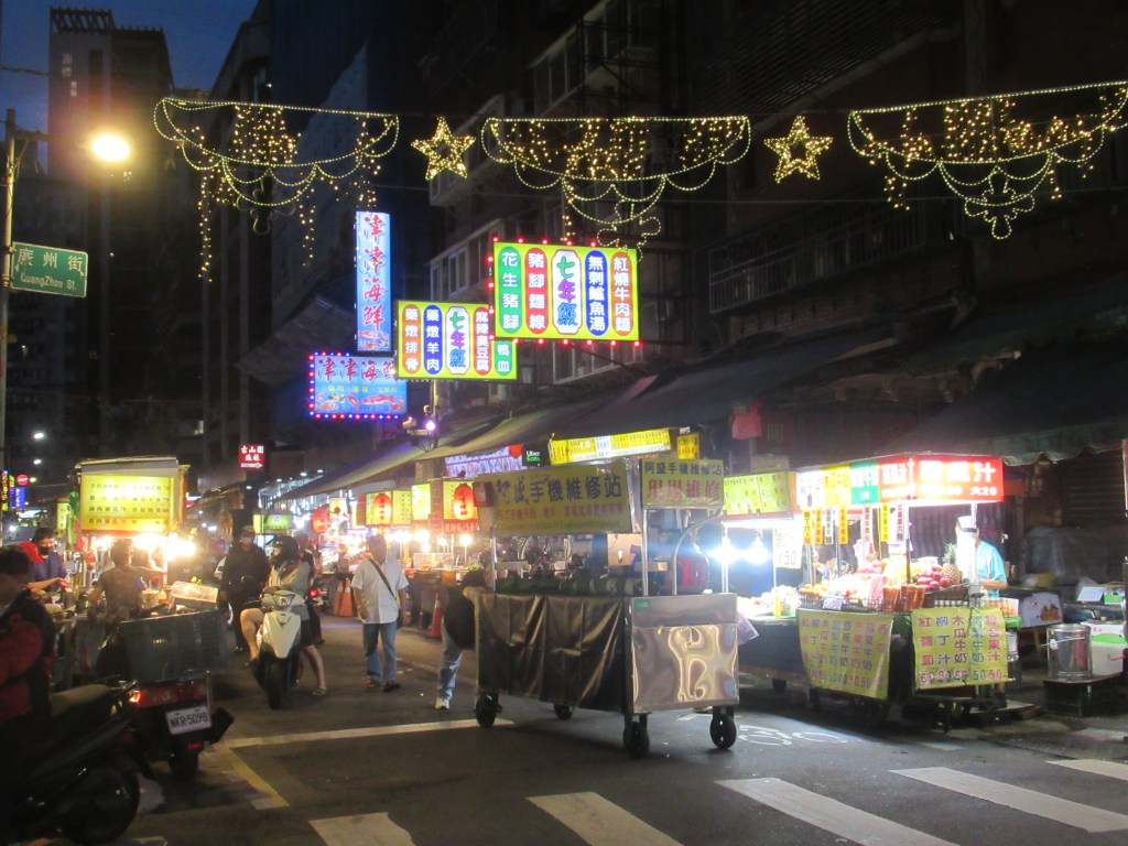 Towards dusk I walked over to Longshan Temple via Bopiliao Old Street – a short street of newly-renovated historic shop houses. First built in 1738, Longshan Temple is Taipei’s oldest and most important. In 1957 it was partially rebuilt following damage caused by allied bombing of the occupying Japanese during World War II. This Buddhist temple stays open late and, as dusk fell, the riotously colourful building was lit up beautifully, and was busy and vibrant with worshipers and visitors. The courtyard outside features a man-made waterfall and a calming pond filled with koi carp.