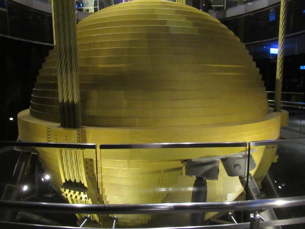 Housed in the interior of the top five or six floors is the damper ball – a huge golden ball weighing 660 tonnes which stabilises the building during typhoons and earthquakes. There is a display explaining how this works and, from what I could understand, it had something to do with either physics or magic (which to my limited knowledge are more or less the same thing). Either way, I watched some slightly hair-raising footage of people at the top of the tower during an earth tremor: terrifying!