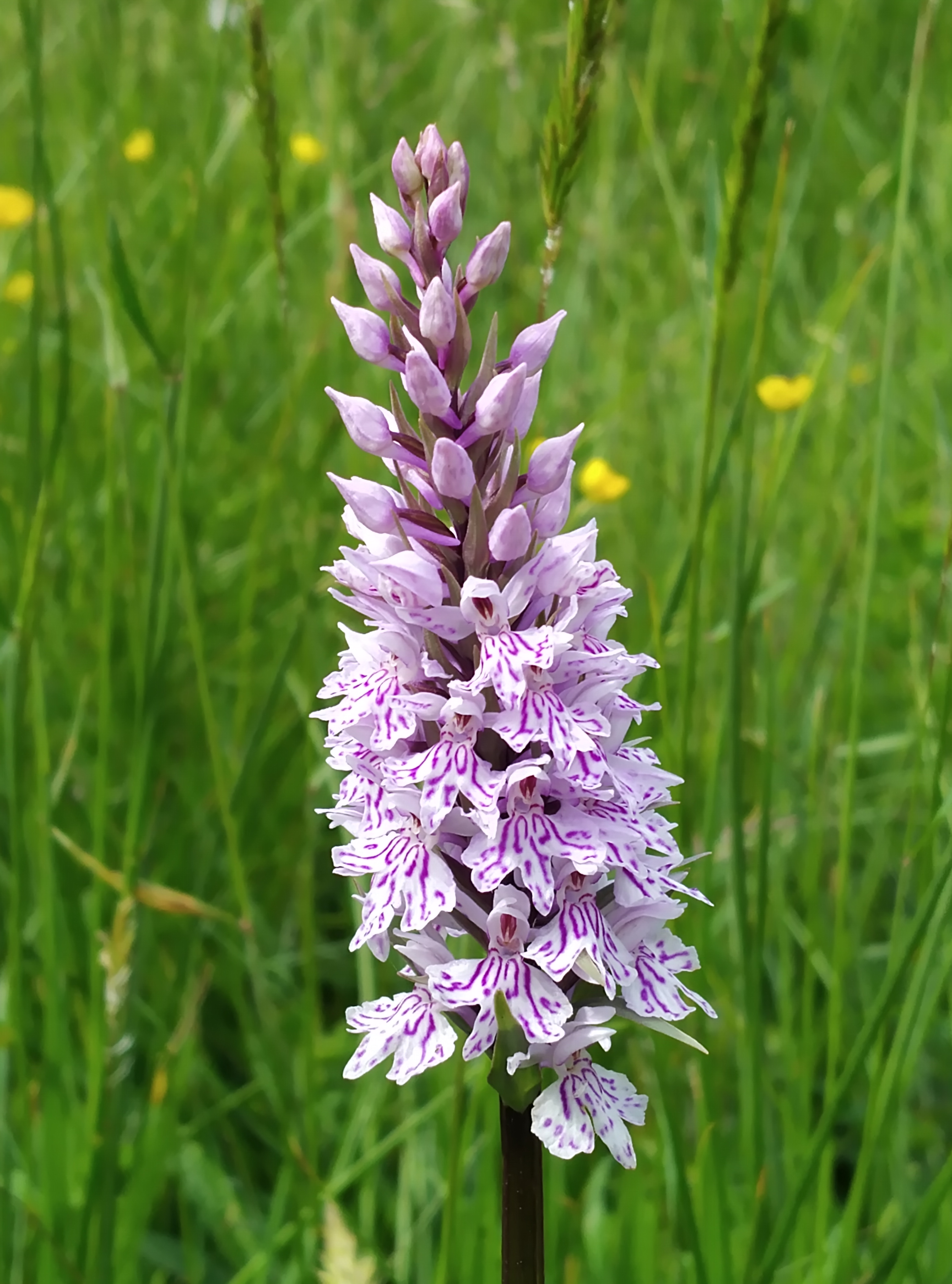 Not wanting to miss out any of The Great Eastern Pingo Trail, I followed the waymarks from the car park in an anti-clockwise direction along the trail until I reached the narrow road where I had gone wrong and, from there, I backtracked to the car park to complete the trail. I’m glad I made the effort to find this final stretch as it held some of the most attractive sights of the walk, with more woodland and some open, flowery grassland filled with Common Spotted Orchids and Southern Marsh Orchids (which I could now confidently identify due to my newly-acquired status as an expert botanist!). And, of course, there were many more pingo ponds of varying size and character.