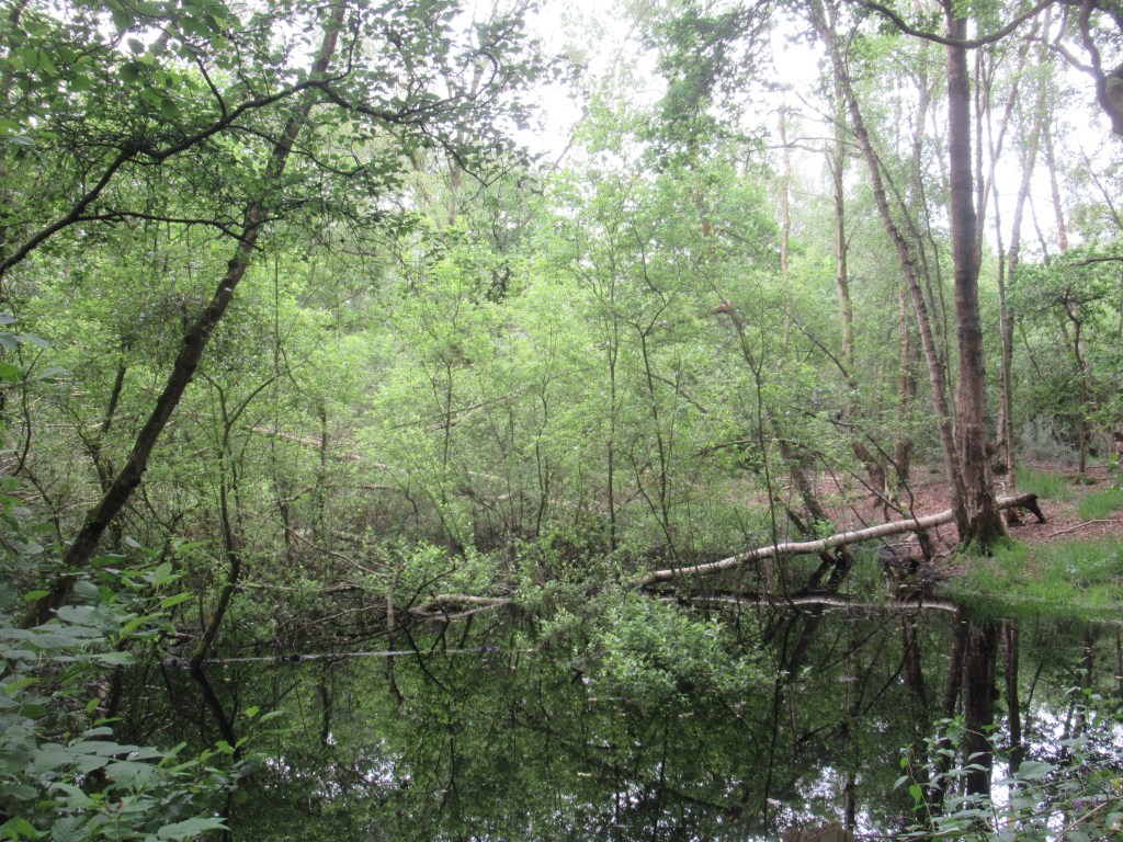 The names of some of these plants give away the fact that this is a watery habitat in the otherwise dry and sandy region of Breckland, the area of heaths and forestry plantations that straddles the border between Norfolk and Suffolk and lays claim to Britain’s lowest rainfall. This northern part of the Pingo Trail passes through Stow Bedon Common, and the woods here feature numerous ponds and flooded areas alongside the path. These don’t look like obvious circular pingos though, and I didn’t get to see any of those until later. The trail here was a bit muddy in places due to the wet Spring we have had this year, but it was still easy to walk.