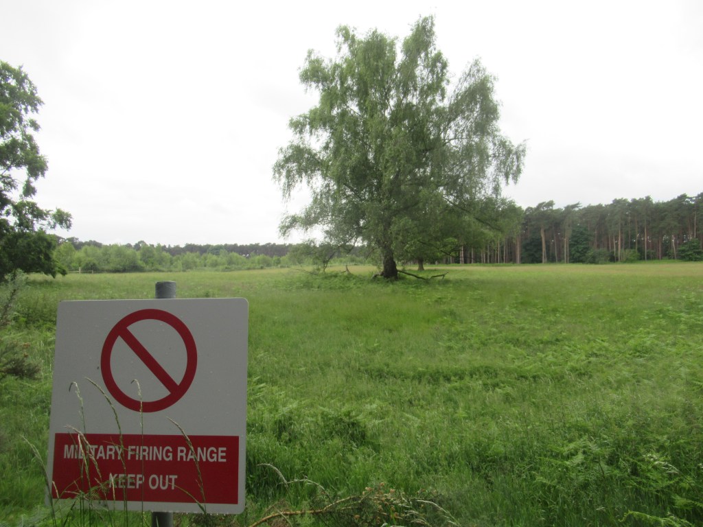Some fenced off land immediately west of the path belongs to the Ministry of Defence and signs warn that it is a military firing range. This is the edge of the Stanford Training Area – a large part of the Brecklands used for training by the army, marked in red as ‘Danger Area’ on the Ordinance Survey maps and inaccessible to civilians. A few years ago I was walking along a forest track in the Brecks when a jeep filled with Gurkhas screeched to a halt and asked me for directions. They had driven out to the Breckland town of Brandon and couldn’t find the way back to their base.