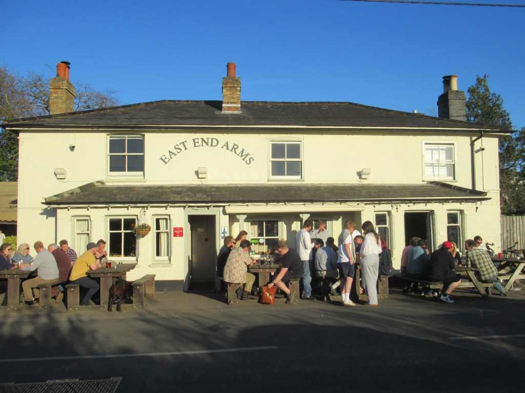 I walk a little bit out of my way to have an early evening drink in a pub shown on the map. Despite being called the East End Arms it’s surprisingly devoid of Cockneys, Pearly Kings, jellied eels or knife attacks. East End is actually the name of a nearby village, and it couldn’t be more different from London’s East End.