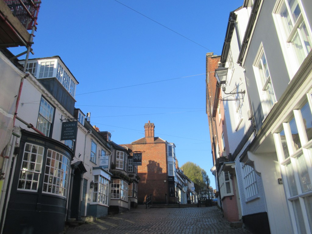 After initially going the wrong way through some new-build apartments, I eventually find my way into the very attractive town. There is an area of narrow, cobbled streets near the quayside and then a steep hill up to a surprisingly long High Street.
