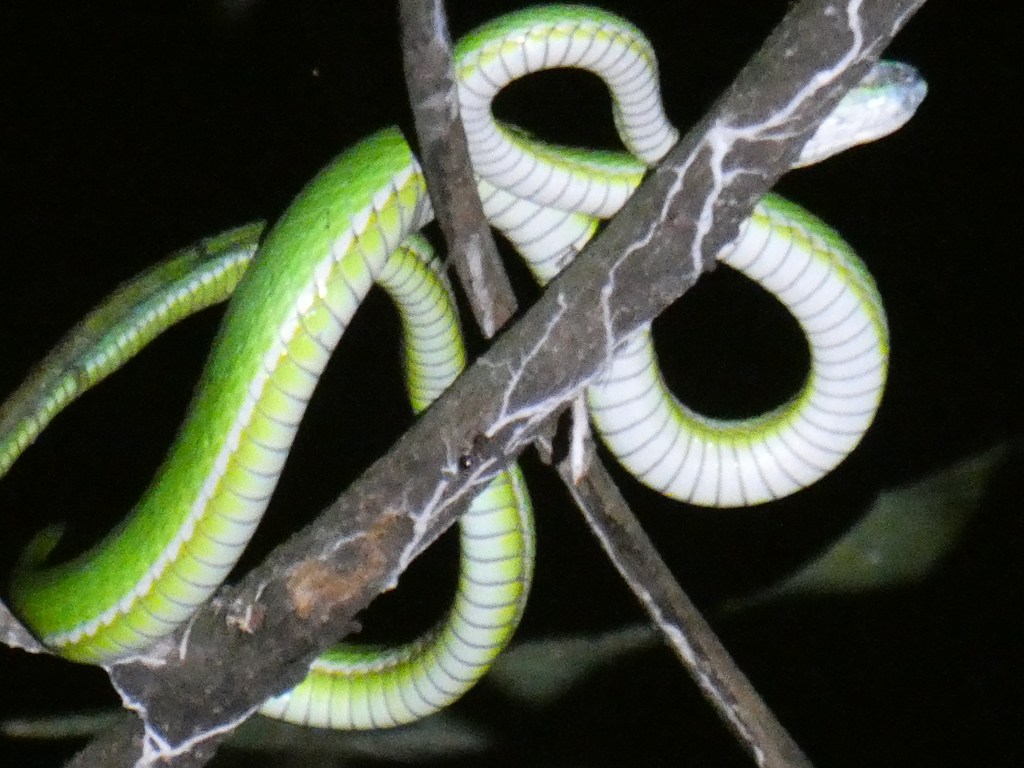 We tried another spotlighting session but no night birds were seen. Two Asian Barred Owlets were heard calling but remained hidden in foliage, and the only animals of interest were some kind of civet seen briefly by some, and a bright green snake in a tree that was later identified as a White-lipped Pit Viper – deadly venomous, apparently.